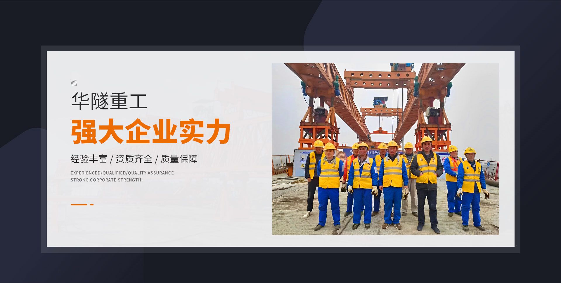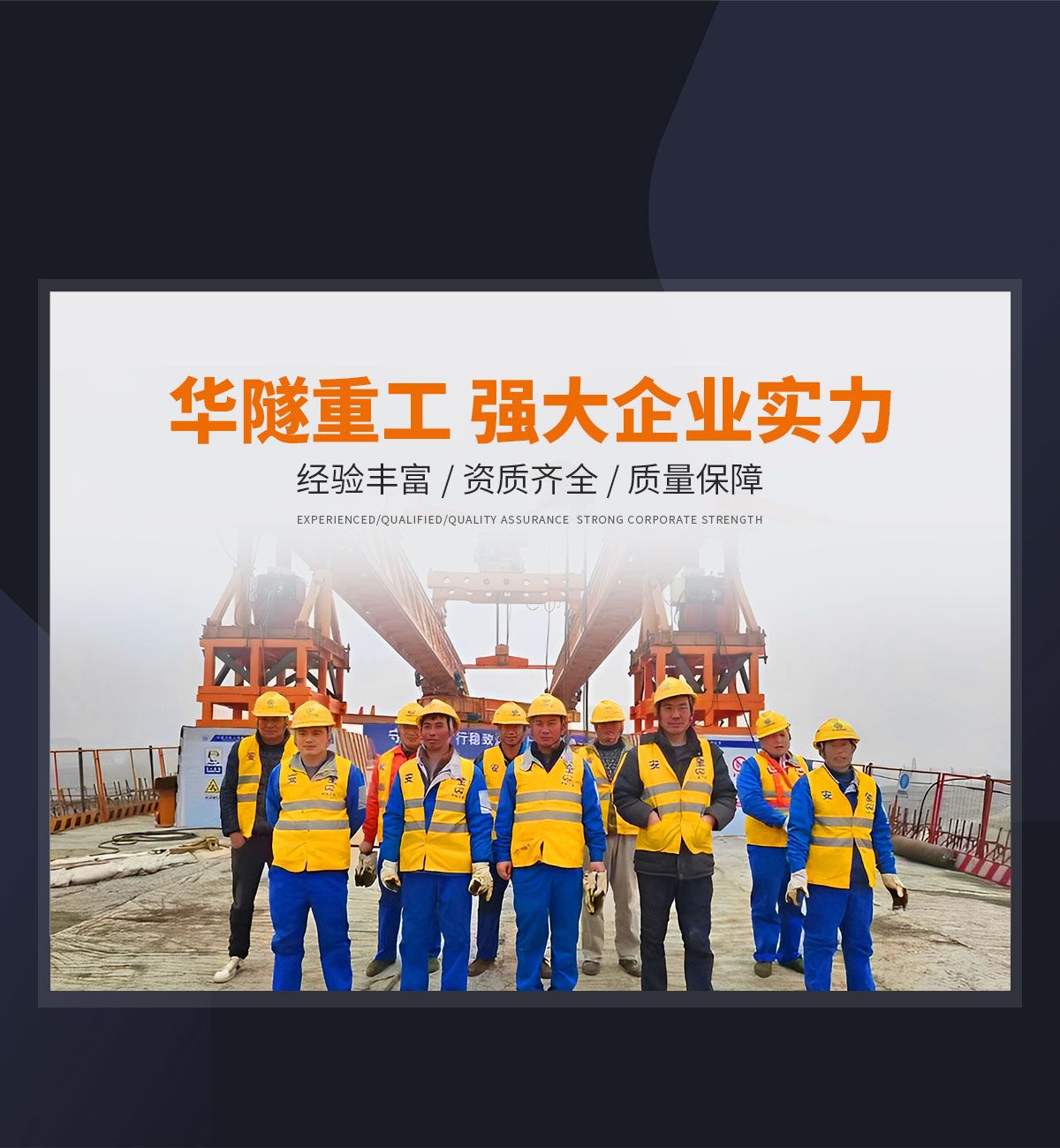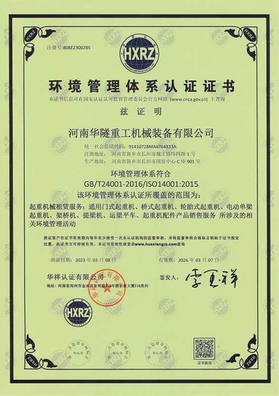 河南華隧重工機械裝備有限公司主要從事通用門式起重機、橋式起重機、電動單梁起重機,輪胎式起重機、架橋機、提梁機、遠梁平車、鋼絲繩電動萌蘆、卷揚機、起重配件制造、銷售:起重機械租賃、安裝和維修,起重設備園收,機械設備維修,鋼結構工程承包,橋梁工程及技術咨淘服務,銷售五金制品、機電設備:建設工程監理,建設工程設計,各類工程建設活動,建筑勞務分包,建筑物折除作業,施工作業,工程管理服務,土石方工程施工,裝如發運?! 」疽淹ㄟ^IS0國際質量、環境、健康與安全三合一標準認證,特種設備制造許可證和特種設備安裝改造維修許可證。擁有完熟的質量管理體系。嚴格的管理制度,強大的生產能力和先進的檢測手段,在保證產品質量的同時,也具備了極強的市場競爭力?! 」緢猿挚萍紕撔聻槔砟?,產品質量為核心,注重信譽,建立了減信可靠、快捷、思速。便利周到的售后服務網絡?! ∥覀儞碛械募夹g專家和技術服務隊伍為客戶提供充善的售前技術支持和全天候的售后服務體系,讓您無后顧之憂,享受一站式的超值服務?!  叭A隧重工,伴您成功“是華隧重工永遠的宗指,真被的希望與各界朋友攜手并進。共創輝準!